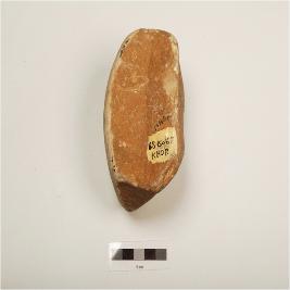 | Description / विवरण | A chopping tool made on quartzite pebble, flake scars on both sides, cortex on one side, tripezoidal in section, pointed anterior and circular posterior end. |