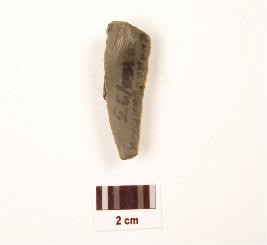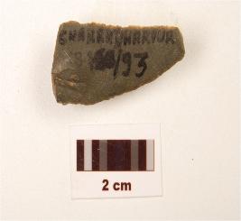 | Description / विवरण | Flake made on chert, use wear mark along cutting edge retouched, bulb diffused, triangular section. |