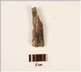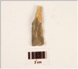 | Description / विवरण | A blade, made on chert with single ridge on dorsal, prepared platform, diffused bulb on ventral, use wear marks on cutting edge and triangular in section. |