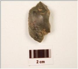 | Description / विवरण | A flake made on chert, flake scars on dorsal side, plano-convex section, distal end bulb, along cutting edge. |