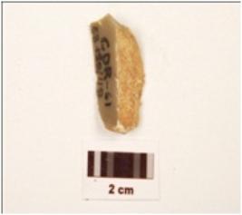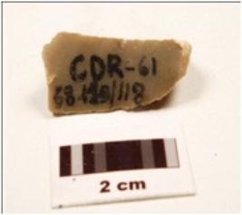 | Description / विवरण | A flake made on chert, cortex on surface, triangular section, use wear marks along cutting edge. |