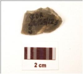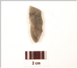 | Description / विवरण | A backed blade made on chert prepared platform, flake scars on dorsal side, use wear marks along cutting edge, plano-convex section. |