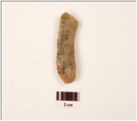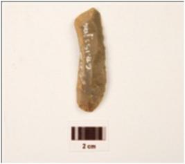 | Description / विवरण | A scraper made on chert with platform, use wear cutting mark retouched, flake scars on dorsal side, plano-convex section, ventral side absent bulb. |