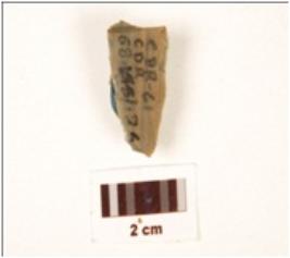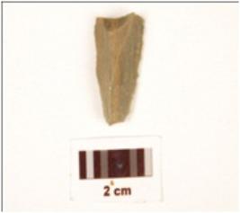 | Description / विवरण | Fragment of a blade, made on chert with double ridge on dorsal, and use wear marks on cutting edge. |