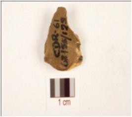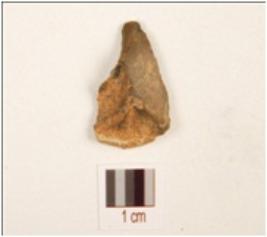 | Description / विवरण | A flake, made on chert with flake scars on dorsal side, diffused bulb on ventral and use wear marks on working edge. |