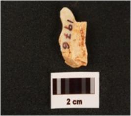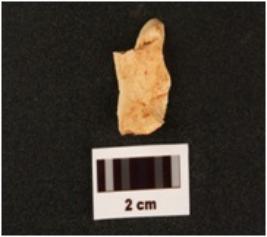 | Description / विवरण | Chert flake, irregular shape, smooth surface, with one shape end. |