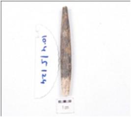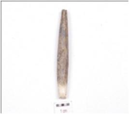 | Description / विवरण | Fragment of a point, made on bone, broken along both the ends, multi faced surface and irregular cross section. |