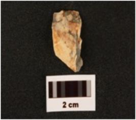 | Description / विवरण | Chert flake, with irregular shape, smooth surface, one concave surface, another convex surface, another convex surface. |