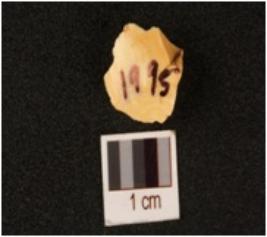 | Description / विवरण | Chert flake, with irregular shape, with one bulbus surface flake scars on another surface |