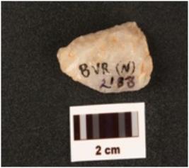 | Description / विवरण | A quartz flake with flake scars on surface smooth surface use wear marks on edge |