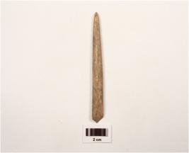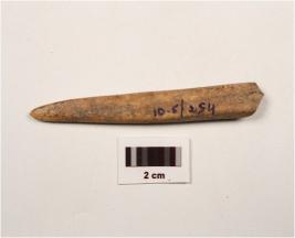 | Description / विवरण | A bone piont, intact distal and proximal end, polished surface, chemical treatment on surface. |