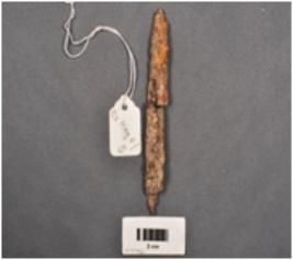 | Description / विवरण | Fragments of an iron spear point, rusted and circular in section. |