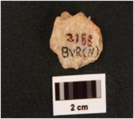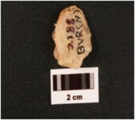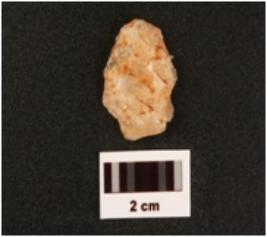 | Description / विवरण | A quartz scraper made on end struck flake use wear marks along cutting edges flake securs on sorsal surface diffused bulb on ventral surface |