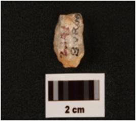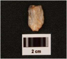 | Description / विवरण | A quartz scraper with use wear marks on edges flake scars on dorsal surface promi bulb on ventral surface |