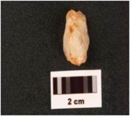 | Description / विवरण | A quartz flake with use wear marks on edges flake scars on surface prominent bulb on ventral surface |