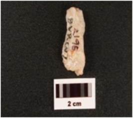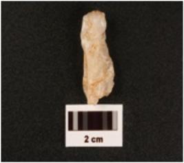 | Description / विवरण | A quartz blade with use wear marks on cutting edges flake scars on surface. |