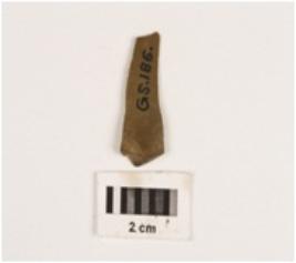| Description / विवरण | It s a chert blade prominent double ridge on dorsal side, bulb on ventral side, trapezoidal in section, use wear mark along the cutting edges, broken from distal end. |