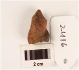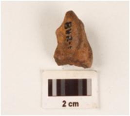 | Description / विवरण | A sandstone ene scraper irregular flake scars uneven surface visible cortax prepared platform |