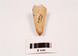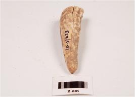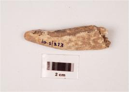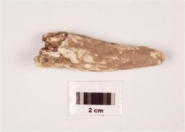 | Description / विवरण | A bone point conical in shape, one end is pointed, cracks on surface, off white in colour, un even and rough surface, bottom fragmented. |