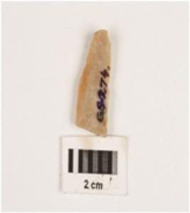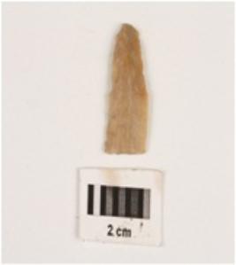 | Description / विवरण | It s a chert blade, broken from proximal end, double ridge on dorsal side, trapezoidal in section, use wear mark along the cutting edges. |
