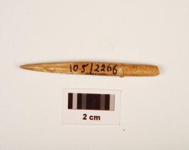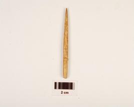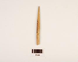 | Description / विवरण | Fragment of a bone point with irregular circular-cross section, one end pointed and another and broken polished with smooth surface, manded. |