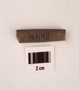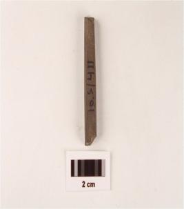 | Description / विवरण | A stone point, with flat wash, square cross section, polished surface, both ends are missing. |