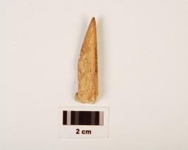 | Description / विवरण | Fragment of bone point, broken at one end another end pointed, upper surface, smooth but under surface rough, polished. |