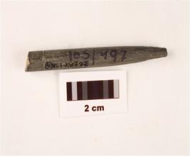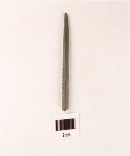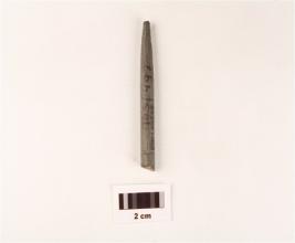 | Description / विवरण | A conical stone point, one end is pointed and round cross section, incised line on base. |
