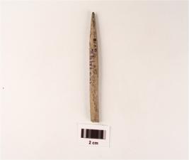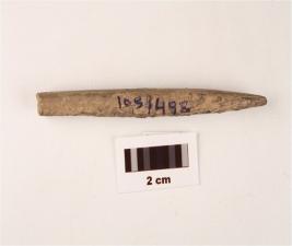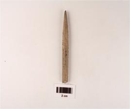 | Description / विवरण | A stone point one end is pointed and has a circualr cross section, rough surface and buff in colour. |