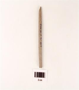 | Description / विवरण | A small elongated stone point, both ends are missing, rough surface and creamish in colour. |