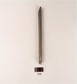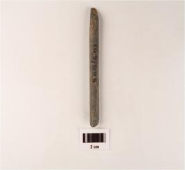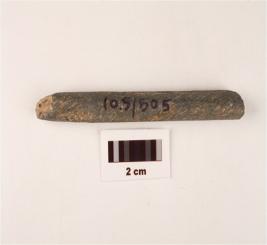 | Description / विवरण | An elongated stone tool, both ends are missing, rough surface. |