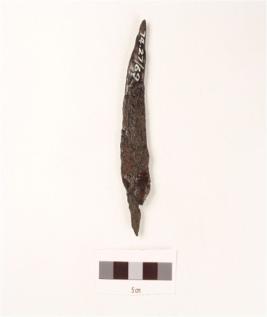 | Description / विवरण | Iron knife blade, chemically treated object. |
