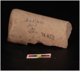 | Description / विवरण | A pastle made on stone, cylindrical in structure with an oval cross section polishing is well, burnished s a glasy appearece. |