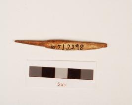 | Description / विवरण | Bone point with rectangular cross section, slightly broken at one end, rough surface with polish. |