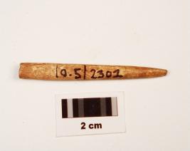 | Description / विवरण | Fragment of bone point with circular-cross section, broken at one end another pointed, smooth, polished surface. |