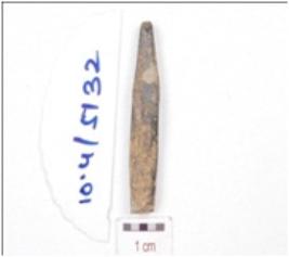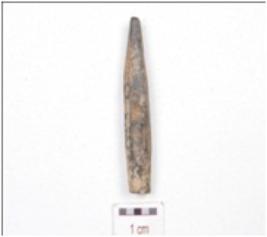 | Description / विवरण | Fragment of a tanged bone point, broken pointed end and irregular cross section. |