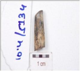 | Description / विवरण | Fragment of a bone point, broken along both the ends and circular cross section. |