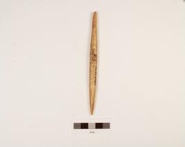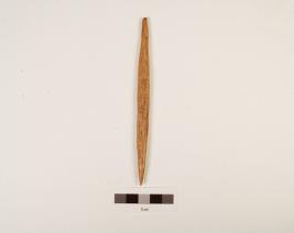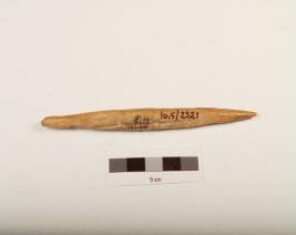 | Description / विवरण | Fragment of a bone point with irregular circular-cross section, pointed at both ends but slightly broken at one end, polished, smooth surface. |