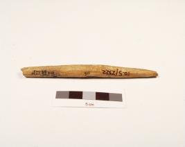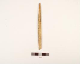 | Description / विवरण | Fragment of bone point with plano convex-cross section, slightly broken at both end but one end pointed, rough surface, polished. |