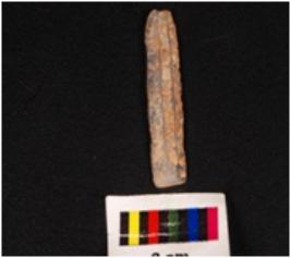 | Description / विवरण | Parallel sided blade, made on dorsal surface, two ridge on dorsal surface ventral surface is smooth and diffuse bulb at proxima end, use wear marks on edges. |