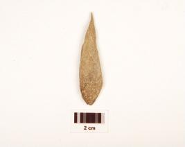 | Description / विवरण | Bone point with pointed end, one end is broad, smooth surface with polish damage surface. |
