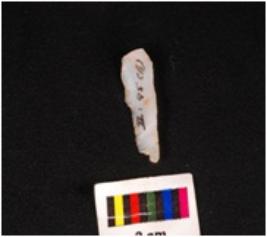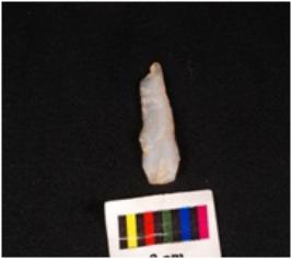 | Description / विवरण | Parallel sidedd blade with a vertical ridge on dorsal surface, broken proximal end, intact distal end, use-wear marks along the cutting edge. |
