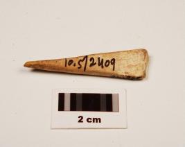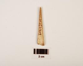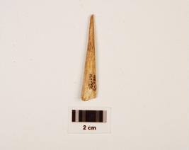 | Description / विवरण | Fragment of bone point with plano convex-cross section, one end broken another end pointed, smooth surface with polish. |