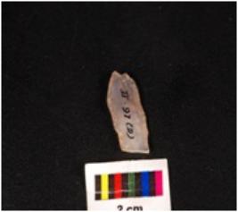 | Description / विवरण | A chalcedony blade with two ridge on dorsal side, trapezoidal section, diffused bulb on ventral side, use-wear marks along the cutting edges, distal end broken and raw material was given heat treatment. |