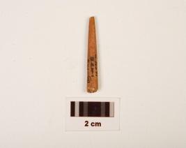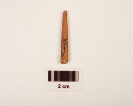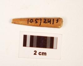 | Description / विवरण | Fragment of bone point with circular-cross section, slightly broken at both ends, smooth surface with polish. |