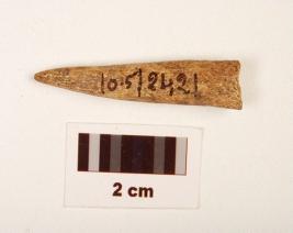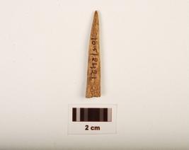 | Description / विवरण | Fragment of bone point, broken at one end another end pointed, rough surface with polish. |
