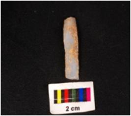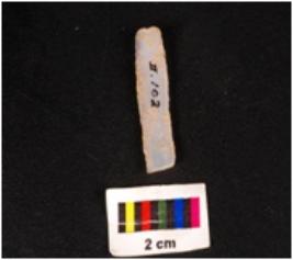 | Description / विवरण | Parallel sided blade of chalcedony with two ridge on dorsal side, trapezoidal section, use-wear marks along the cutting edges and the raw material was given heat treatment. |