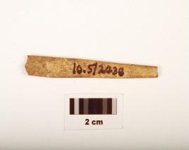 | Description / विवरण | Fragment of bone point, rectangular-cross section, both ends slightly broken, smooth surface with polish. |