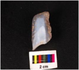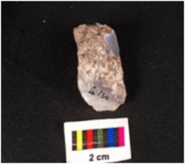 | Description / विवरण | A chalcedony core with a prepared platform and four blade scars on the surface. |