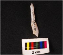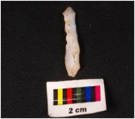 | Description / विवरण | A parallel sided blade made on chalcedony with a mid-ridge on the dorsal side, diffused bulb on the ventral side, broken at left cutting edge, triangular in section. |